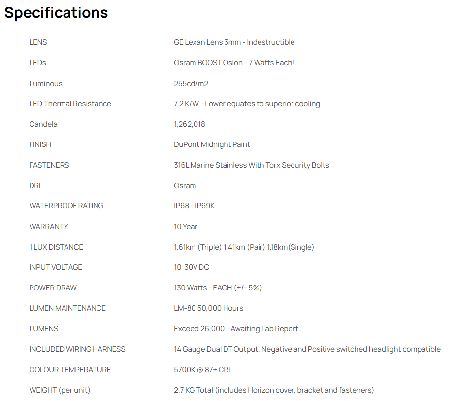 130 Watts - Each - Our highest powered, longest and widest reaching light.
