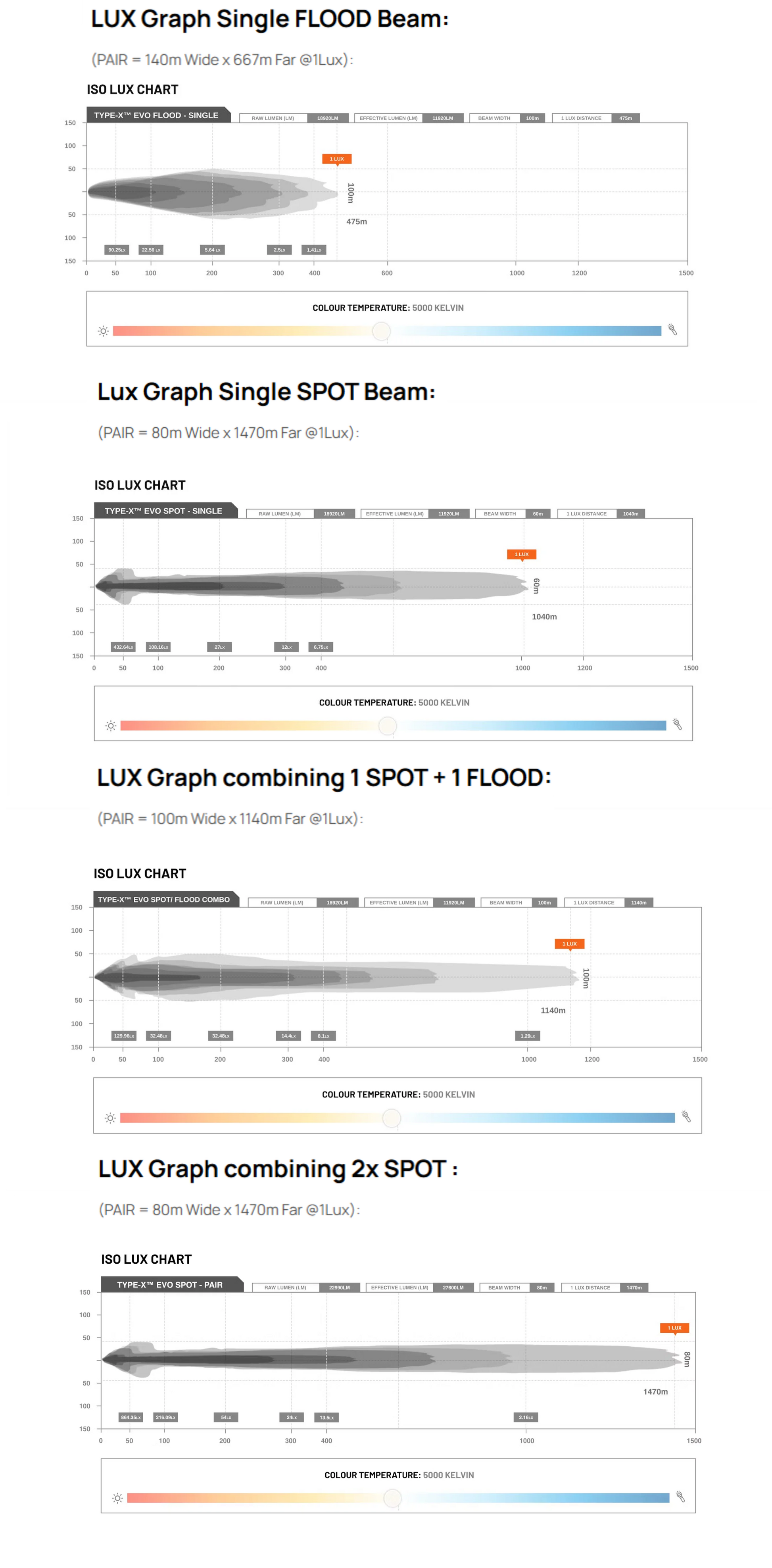TYPE-X™ EVO has arrived in a separate dedicated flood and spot beam pattern, meaning you can mix and match, and have full control of your desired beam to suit your driving style and needs. Utilising a more efficient technology from CREE’s XP range of LED’s, TYPE-X™ EVO offers up to a staggering 1470m of light throw down the road, and up to a 140m of light spread laterally into the critical zones.
