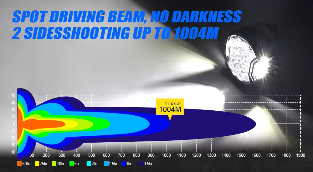 Eliminate Blind Spots: Dedicated side-facing LED arrays fill the gaps that traditional lights miss, providing a seamless transition from the center hot-spot to the trail edges.